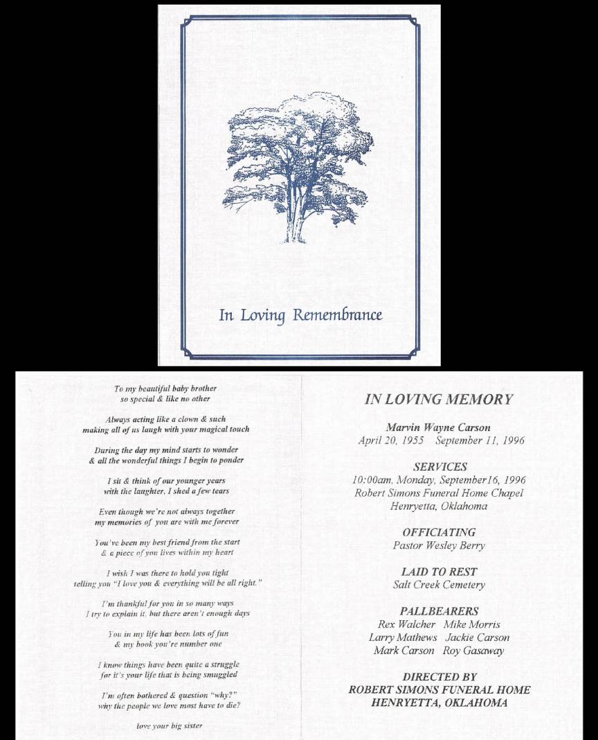 This letter is to tell you about Marvin Wayne Carson. He was a typical fair-skinned, freckle-faced, red-headed guy! But what wasn’t typical was that he always seemed to be “up” about everything. I truly can’t recall a moment when Marvin didn’t have a smile on his face. He also had the distinction of being born on the day that McDonalds was founded!