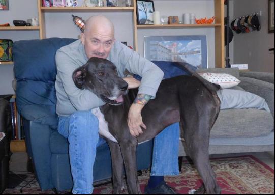 Jon with Gunther, one of his two Great Danes. He is an amazing animal person. |